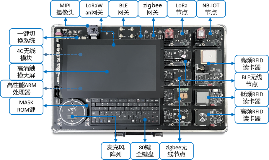 1 | 嵌入式邊緣物聯(lián)網(wǎng)實(shí)驗(yàn)平臺(tái) | 25 | 由邊緣計(jì)算處理器RK3399,4G+16G內(nèi)存配置,11.6寸高清電容屏、AI攝像頭、AI麥克風(fēng)陣列、zigbee節(jié)點(diǎn)、藍(lán)牙節(jié)點(diǎn)和Nbiot節(jié)點(diǎn)、lorawan節(jié)點(diǎn)、RFID等多種無(wú)線傳感器節(jié)點(diǎn)構(gòu)成。提供更豐富的擴(kuò)展接口:雙路USB3.0,RS232,RS485,嵌入式拓展接口等各種外設(shè)接口。 | |