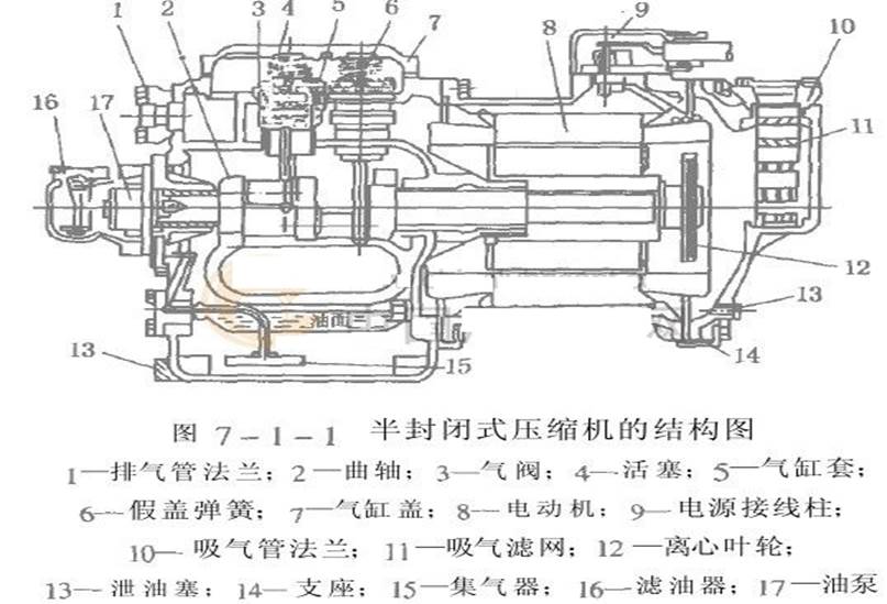 各類活塞式制冷壓縮機(jī)的拆卸工藝雖然基本相似,但由于結(jié)構(gòu)不同,所以拆卸的步驟和要求也略有不同,應(yīng)根據(jù)各類壓縮機(jī)的特點(diǎn)制訂不同的拆卸方法,下面以半封閉制冷壓縮機(jī)為例說(shuō)明這種類型的制冷壓縮機(jī)拆卸方法和步驟。