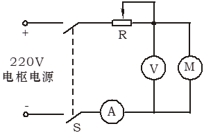 (3)M起動后,調(diào)節(jié)電樞電源的“電壓調(diào)節(jié)”旋鈕,使電動機(jī)電樞端電壓為220伏。減小起動電阻 R1阻值,直至短接。