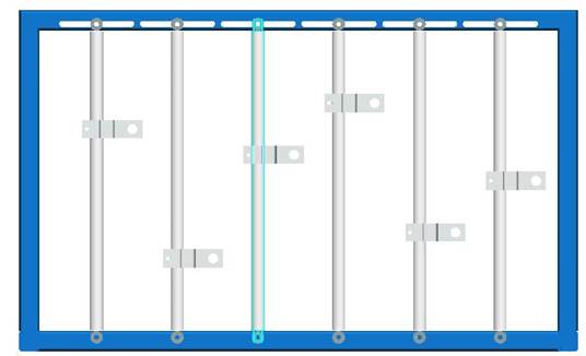 實驗臺機架如圖2所示:機架中有5根鉛垂的活塞桿,它們可沿X軸左右移動,固定靠六角頭螺釘和蝶型螺母固定。需移動時請先將蝶型螺母松開,雙手推動活塞桿.并盡可能使它保持垂直狀態(tài);钊麠U上的滑塊可沿Z軸上下移動,用內(nèi)六角螺釘將滑塊緊定在活塞桿上。(注意:在移動立柱或滑塊時需用直尺或卷尺量出它們的相對位置再把螺釘擰緊。)