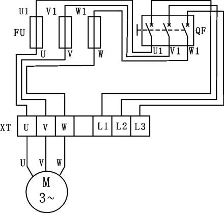 確認安裝牢固、接線無誤后,先接通三相總電源,按下“啟動”按鈕,再“合”上QF開關,電機應正常起動和平穩(wěn)運轉。若熔絲熔斷(可看到熔心頂蓋彈出)則應“分”斷電源,檢查分析并排除故障后才可重新“合”電源。