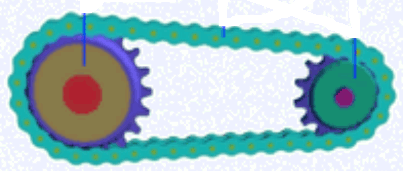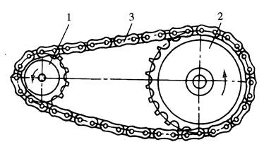 鏈傳動(dòng)是由裝在平行軸上的主、從動(dòng)鏈輪和繞在鏈輪上的環(huán)行鏈條所組成,以鏈作中間撓性件,靠鏈與鏈輪輪齒的嚙合來傳遞動(dòng)力。
