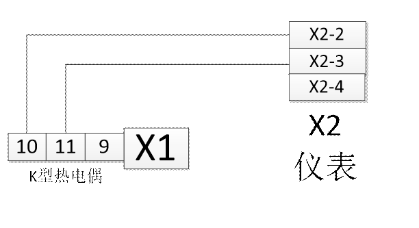 1、 K型熱電偶接法: