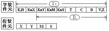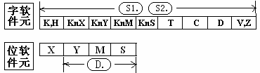 比較源S1與源S2的大小,目標地址D輸出相應的動作。大小比較是按代數(shù)形式進行的(-10<2)。所有源數(shù)據都被看成二進制值處理。目標地址D假如指定M0,則M1、M2被自動占用。