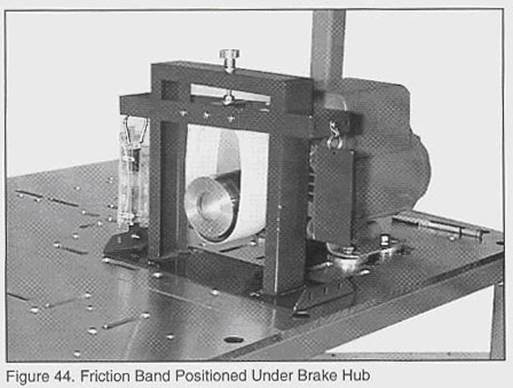 C. 確定制動(dòng)帶擱在輪轂下方,如圖44所示;