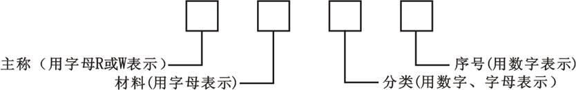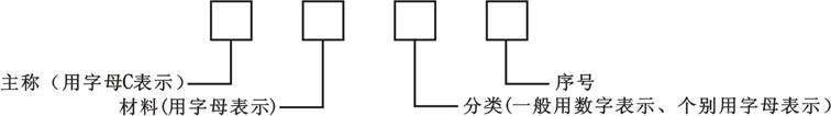 用字母表示主稱 | 用字母表示材料 | 用數(shù)字或字母表示分類 | ||||
