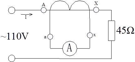 1)按圖2-4-2、2-4-3接線。圖中電流互感器選用屏左下角的電流互感器,45歐電阻選用屏上可調(diào)電阻1,兩個90歐電阻并聯(lián),電流表選用交流數(shù)字電流表。