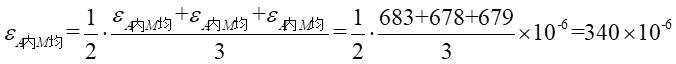 (2)由實(shí)驗(yàn)數(shù)據(jù)可知,A-A截面上內(nèi)圈處由彎曲引起的平均應(yīng)變?yōu)椋?br />