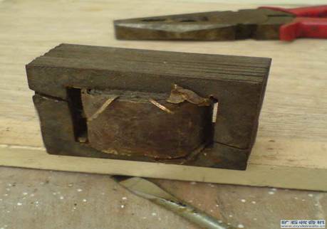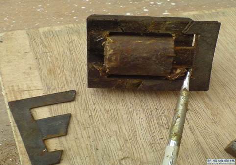 6、把對(duì)側(cè)的那兩片也敲出來(lái),這下鐵心就沒(méi)有那么緊了,重復(fù)上面的步驟,再敲出一兩片來(lái),就不會(huì)很困難了。如圖1-7。