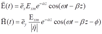 有耗媒質(zhì)中,均勻平面電磁波的坡印廷矢量的瞬時值為