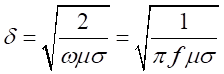 電磁波進(jìn)入導(dǎo)體的距離為幾個穿透深度時,振幅即接近于零,故良導(dǎo)體中的電磁場以及傳導(dǎo)電流于實(shí)際上只存在于導(dǎo)體表面處極薄的一層之中。這種電磁場及電流集中于導(dǎo)體表面附近的現(xiàn)象,稱為趨膚效應(yīng)。由于d很小,故在頻率很高時,對一切具有實(shí)際意義的厚度的導(dǎo)體,電磁波是不能透過的。良導(dǎo)體的得透射系數(shù)為