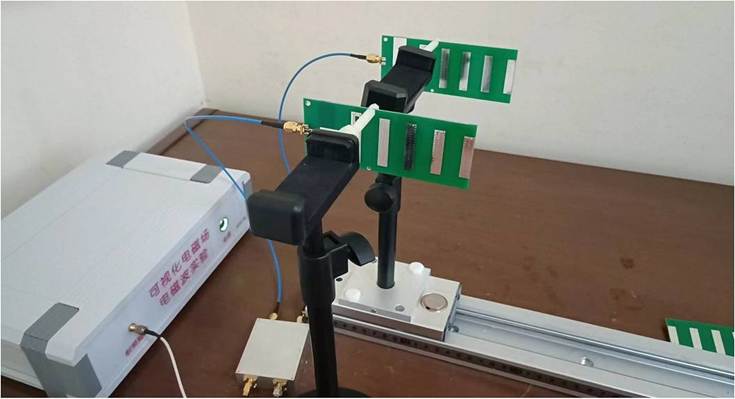 2)將八木天線安裝到旋轉(zhuǎn)支架上,將其垂直放置,移動(dòng)到距離發(fā)射天線80~90cm處。