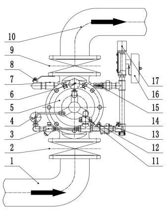 關(guān)閉消防電磁閥(13)及手動(dòng)緊急控制球閥(14),打開(kāi)復(fù)位球閥(3)雨淋閥很快就復(fù)位。然后將各閥門(mén)置于伺服工作狀態(tài)位置。