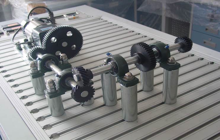 1、選折合適的位置安裝電動機(jī),并把主動齒輪安裝在電機(jī)軸上。(安裝過程見直齒圓柱齒輪傳動實(shí)驗(yàn))。