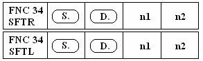 對于n1位(移動寄存器的長度)的位元件進(jìn)行n2位的右移動或左移動的指令(指令執(zhí)行時執(zhí)行n2位的移位)。