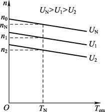 1.相關(guān)知識 1)調(diào)速指標(biāo) (1)調(diào)速范圍 (2)靜差率 (3)調(diào)速的平滑性 (4)調(diào)速的經(jīng)濟(jì)性 2)改變電樞電壓調(diào)速 改變電樞電壓調(diào)速是指在他勵(lì)直流電動(dòng)機(jī)中,由一可調(diào)節(jié)的直流電源向電樞供電,在其他參數(shù)不變的條件下,通過調(diào)節(jié)直流電源來改變電樞電壓U,使空載轉(zhuǎn)速n0改變,從而使電動(dòng)機(jī)拖動(dòng)負(fù)載運(yùn)行于不同的轉(zhuǎn)速,如圖2-20所示。 ![]() 圖2-20 他勵(lì)直流電動(dòng)機(jī)改變電樞電壓調(diào)速的機(jī)械特性 從圖2-20中可以看出,在負(fù)載相同的情況下,不同的電樞電壓所對應(yīng)的轉(zhuǎn)速是不同的。改變電樞電壓調(diào)速的特點(diǎn)如下: ① 改變電樞電壓調(diào)速時(shí),機(jī)械特性曲線的斜率不變,所以,調(diào)速的穩(wěn)定性好。 ② 電壓可做連續(xù)變化,調(diào)速的平滑性好,調(diào)速范圍廣。 ③ 屬于恒轉(zhuǎn)矩調(diào)速,電動(dòng)機(jī)不允許電壓超過額定值,只能由額定值向下降低電壓調(diào)速,即只能減速。 ④ 電源設(shè)備的投資費(fèi)用較大,但電能損耗小,效率高。 隨著晶閘管變流技術(shù)的飛速發(fā)展,改變電樞電壓調(diào)速在電力拖動(dòng)系統(tǒng)中的應(yīng)用越來越廣泛。 3)電樞回路串電阻調(diào)速 4)弱磁調(diào)速 |