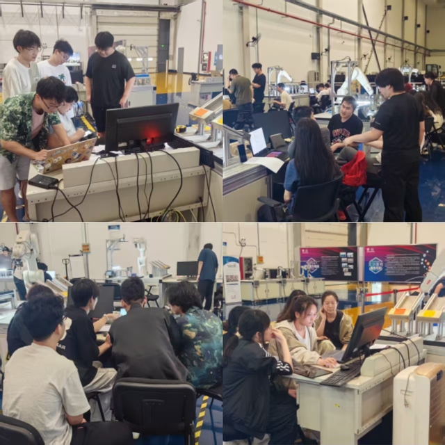 在課程開設(shè)期間,計算機(jī)科學(xué)與技術(shù)學(xué)院書記魏建華、常務(wù)副院長張傳林、副書記齊永曉、教學(xué)秘書徐曼、計算機(jī)系主任葉文珺等一行來到校企合作實(shí)訓(xùn)基地,實(shí)地走訪調(diào)研學(xué)生課程實(shí)訓(xùn)情況。在廠房現(xiàn)場,領(lǐng)導(dǎo)們觀摩了學(xué)生分組進(jìn)行的工業(yè)視覺零件輪廓識別,顏色識別與卡尺工具應(yīng)用等實(shí)操,并與授課老師、參訓(xùn)學(xué)生親切交流。張傳林對學(xué)生們將理論知識轉(zhuǎn)化為實(shí)踐應(yīng)用的能力表示肯定,他強(qiáng)調(diào)產(chǎn)教融合實(shí)訓(xùn)是培養(yǎng)應(yīng)用型人才的關(guān)鍵環(huán)節(jié),希望同學(xué)們珍惜企業(yè)實(shí)戰(zhàn)機(jī)會,在真場景中練就真本領(lǐng)。后續(xù)學(xué)院將持續(xù)跟蹤實(shí)訓(xùn)成效,動態(tài)調(diào)整教學(xué)方案,持續(xù)優(yōu)化產(chǎn)業(yè)需求為導(dǎo)向、能力提升為核心的育人新模式,確保人才培養(yǎng)與行業(yè)需求精準(zhǔn)對接。