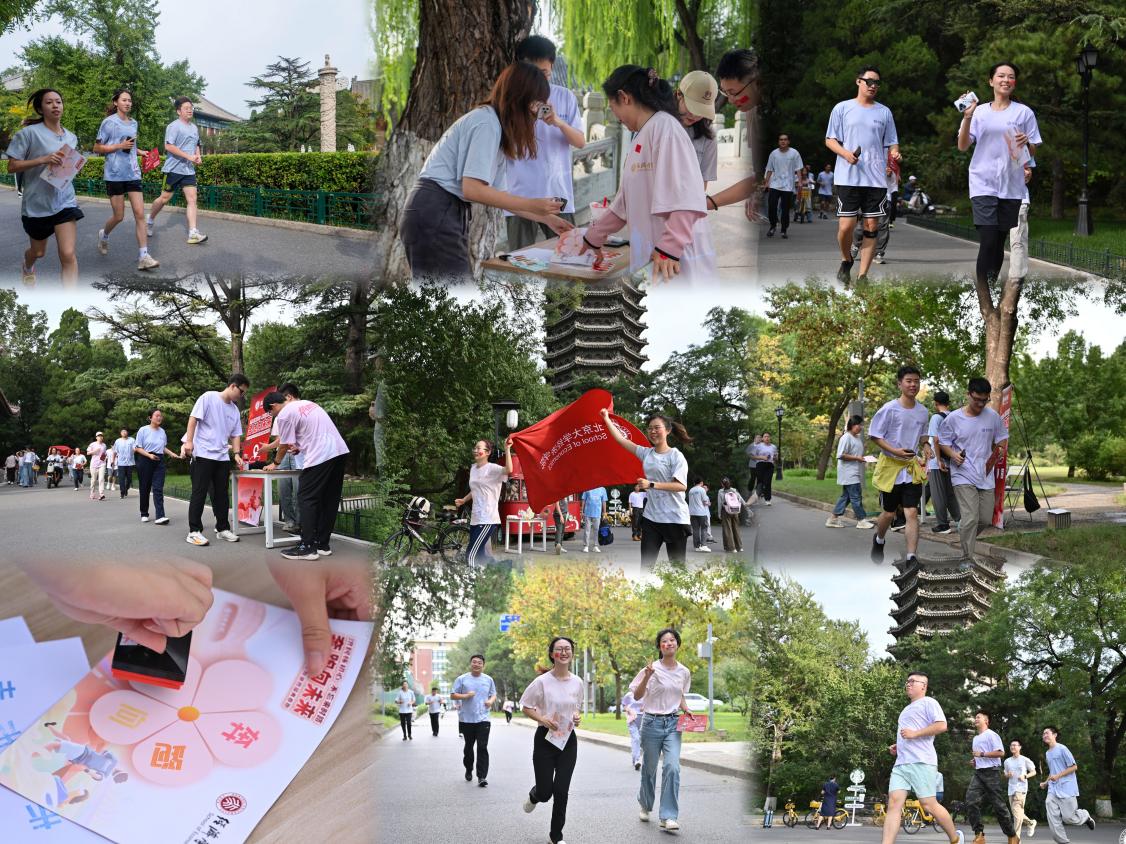 15時30分,經(jīng)濟學院黨委書記崔建華鳴槍發(fā)令,經(jīng)院師生共同開跑。本次青春跑活動全程約2.6公里,師生分為六個方陣,從經(jīng)濟學院院樓出發(fā),途經(jīng)華表、李大釗像、靜園、圖書館、博雅塔五個打卡點,不僅領略到燕園秋色,更通過打卡點的紅色地標,重溫北大經(jīng)院百余年的光輝歷程。師生們在學院院樓留影墻前留下珍貴瞬間,領取完賽證書。