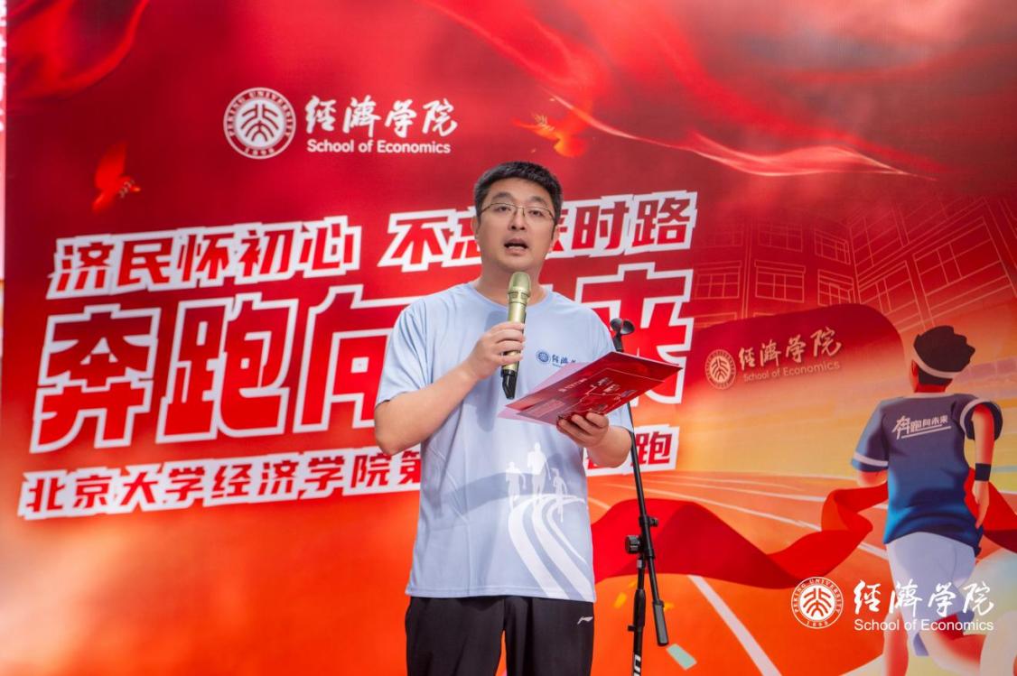 經(jīng)濟學院院長張輝在致辭中向所有工作人員表示感謝,并對參與師生表示熱烈歡迎。他帶領師生回顧了在黨領導下中國人民走過的偉大征程,勉勵同學們心懷夢想、奮勇拼搏,一步一個腳印,一棒接著一棒,在奮力奔跑和接續(xù)奮斗中成就夢想。張輝預祝本次活動圓滿成功,希望師生們在青春的奔跑中收獲健康、磨礪心性、享受成長、歡度國慶。