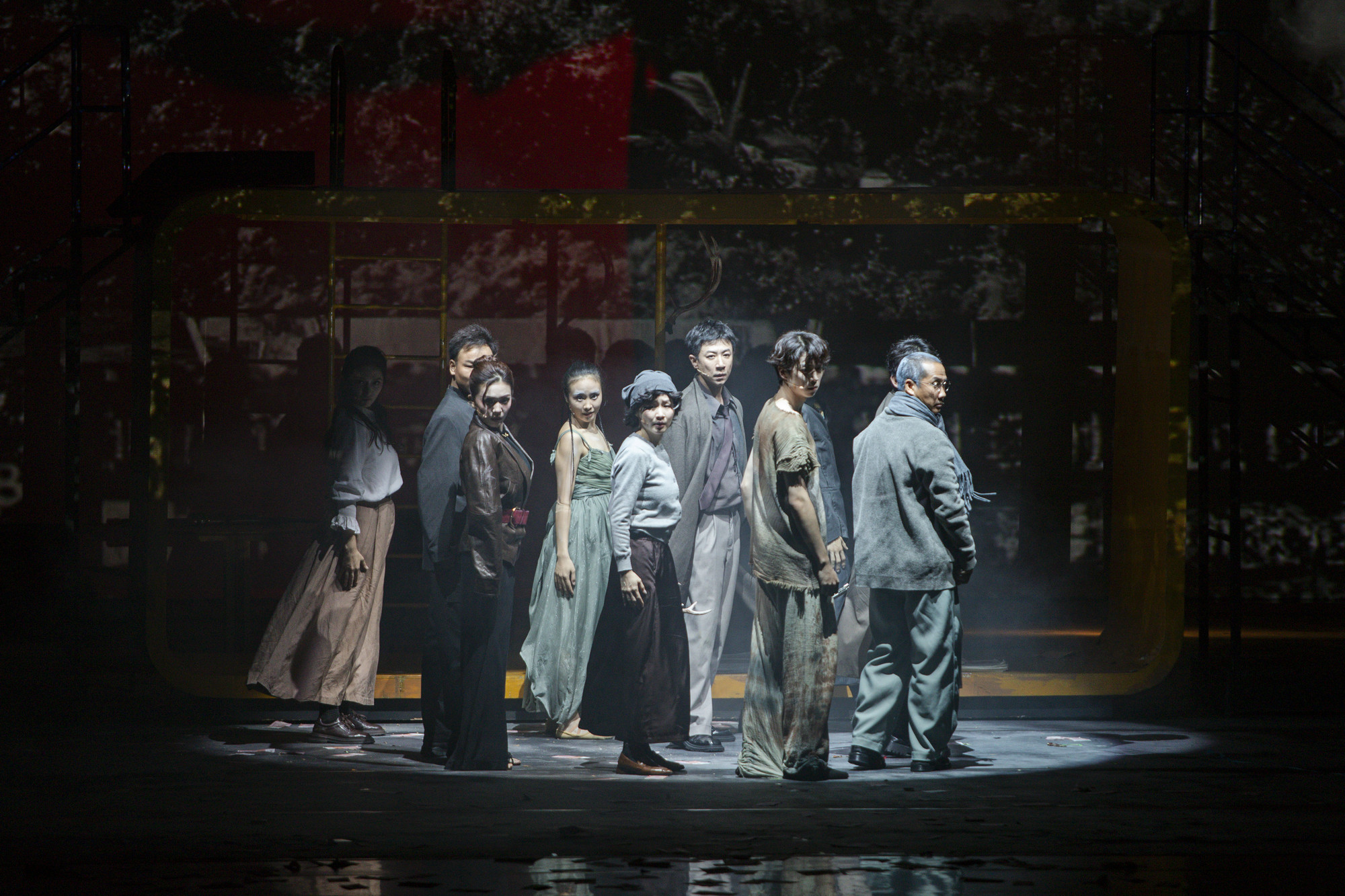 該劇改編自西班牙懸疑大師奧瑞歐·保羅同名電影,為觀眾呈現(xiàn)了一場層層反轉的心理博弈,打造出融合懸疑敘事與藝術美感的精彩演出。導演丁一滕將傳統(tǒng)戲曲動作與現(xiàn)代肢體語匯相融,用倒懸汽車、迷霧森林等超現(xiàn)實舞臺符號,把密室殺人案的懸疑敘事轉化為探討“罪與救贖”的人性寓言。而張維伊、金靖、張嘉元等年輕主演,更是以鮮活細膩的表演,將角色內心的掙扎與博弈精準外化,強化了戲劇的沉浸感與思想厚度,呼應當代青年對“深度敘事+創(chuàng)新美學”的審美需求。