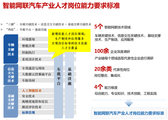 學(xué)生畢業(yè)后可在北汽新能源、一汽、吉利、比亞迪、百度、星科智能等領(lǐng)軍企業(yè)從事汽車智能設(shè)備、智能網(wǎng)聯(lián)汽車輔助研發(fā)、生產(chǎn)制造、售后服務(wù)等工作,工作崗位包括智能網(wǎng)聯(lián)汽車輔助研發(fā)助理工程師、智能網(wǎng)聯(lián)汽車測試工程師、智能網(wǎng)聯(lián)汽車現(xiàn)場工程師、道路數(shù)據(jù)采集專員、汽車標(biāo)定師、汽車智能設(shè)備改裝技師、汽車電腦維修技師等。