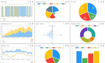 4)提供豐富的可視化控件庫(kù),通過(guò)拖拽、簡(jiǎn)便配置即可完成美觀的UI設(shè)計(jì)。支持GIS地圖、曲線圖、柱狀、餅圖、圖表、按鈕、儀表圖等控件。
