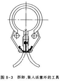 (3) 用專用工具拆活塞環(huán)。見(jiàn)圖8-3。
