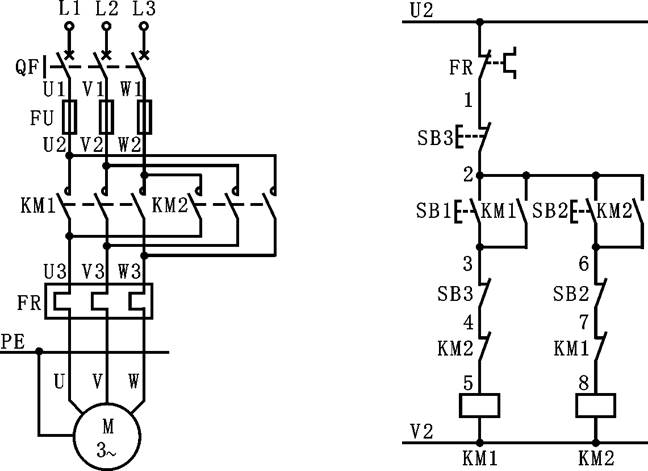 該控制線路集中了按鈕聯(lián)鎖和接觸器聯(lián)鎖的優(yōu)點,故具有操作方便和安全可靠等優(yōu)點,為電力拖動設備中所常用。