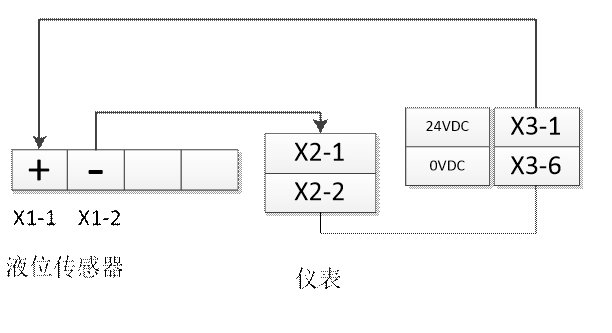 具體的接線:將X3接線端子排上的“24V+”接到X1液位變送器的“+”,變送器的“-”接到X2儀表信號采集端子“+”,信號采集端子“-”接到“24V-”端。