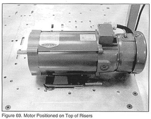 A. 將電機(jī)用螺栓,墊圈,螺母等安裝到工作臺表面,如圖70所示,手工擰緊。