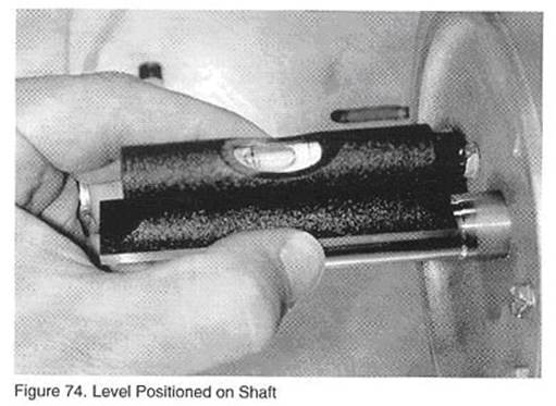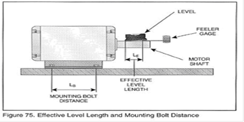 A.將水平儀放置在電機(jī)軸上,如圖57所示,觀察氣泡的位置。務(wù)必使得水平儀放置在軸的光滑表面上,一些軸是階梯軸,所以水平儀必須放置在其中一段上面,如圖57所示。