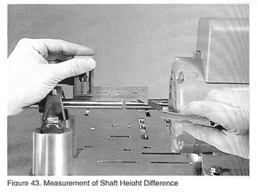 力時(shí),葉片的厚度合適),葉片的厚度就是兩軸的高度差,如果軸的高度差在0.25~0.4mm的范圍內(nèi),進(jìn)入下一步驟,否則重新調(diào)整軸承支架的高度直到滿足要求。