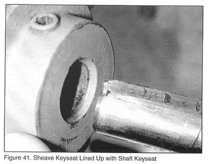 I. 拿起小帶輪將其鍵槽對準(zhǔn)電機(jī)軸上的鍵,如圖41所示;