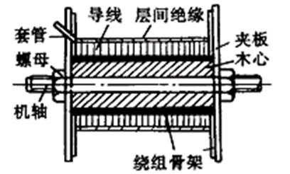 1)木心固定在繞線機軸上,并在木心上套好紙質(zhì)無框骨架如圖1-10。