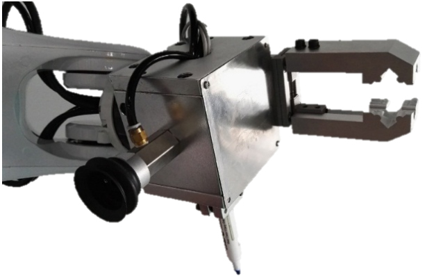 使用多功能實訓(xùn)夾具的優(yōu)點是只需要通過變換機器人手爪姿態(tài)即可實現(xiàn)對模擬應(yīng)用環(huán)境的模擬操作與編程,外形尺寸:120*120*180mm,重量2KG;具備吸緊工件實現(xiàn)碼垛功能;實現(xiàn)夾持物料模擬上下料的功能,同時具有軌跡畫筆。