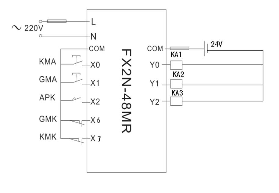 | KMA | 開門按鈕 | X0 | GMJ(KA1) | 關門繼電器 | Y0 |