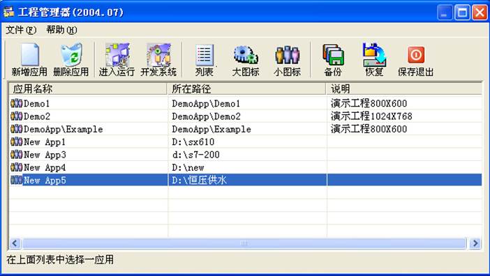 在“工程管理器”中選擇“新增應用”,就會彈出應用定義對話框