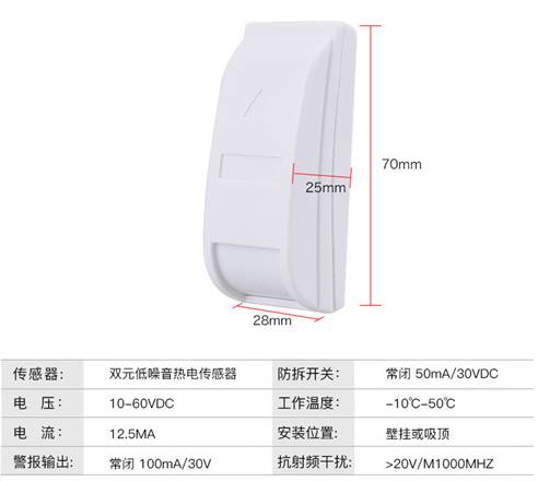 圖4-3 幕簾紅外傳感器參數(shù)表