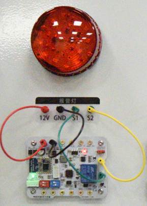 圖4-1 報(bào)警燈實(shí)物圖 圖4-2 報(bào)警燈實(shí)物接線圖