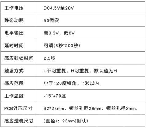 圖5-9 人體感應(yīng)模塊參數(shù)表