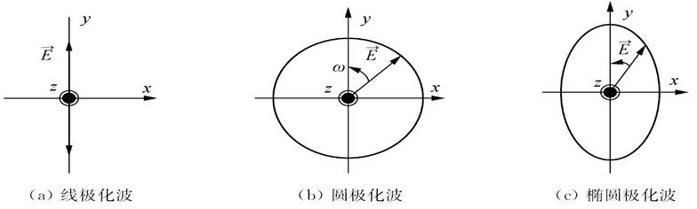 平面波電場兩個(gè)分量取不同振幅和相位時(shí),空間在一固定點(diǎn)處的合成電場矢量端點(diǎn)的軌跡,從而確定其極化狀態(tài)。