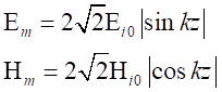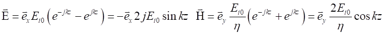 由上式可以看到,z≤0空間中的合成波具有如下特點(diǎn)電場強(qiáng)度和磁場強(qiáng)度的振幅不再是常量,沿波的傳播方向按正弦函數(shù)或余弦函數(shù)分布,即在kz=-np,也就