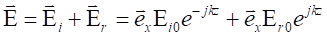 取坐標(biāo)系如圖。能與上面類似的處理,可得此時(shí)媒質(zhì)1中的合成波的電磁場表示式為