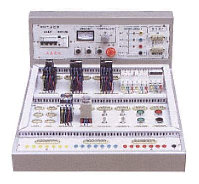 1、將熔斷器、空氣開關、交流接觸器、時間繼電器、熱繼電器、按鈕開關、行程開關、接線排等各種實訓元器件集中安裝在一塊面板上