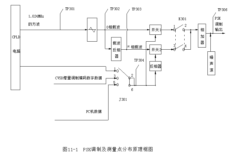 1-2和3-4均相連時,TP305為PSK調(diào)制信號疊加輸出。