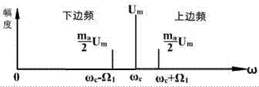 調(diào)幅的過程就是在頻譜上將低頻調(diào)制信號搬移到高頻載波分量兩側(cè)的過程。在單頻調(diào)制時(shí),其調(diào)幅波的頻帶寬度為調(diào)制信號頻譜的兩倍,即