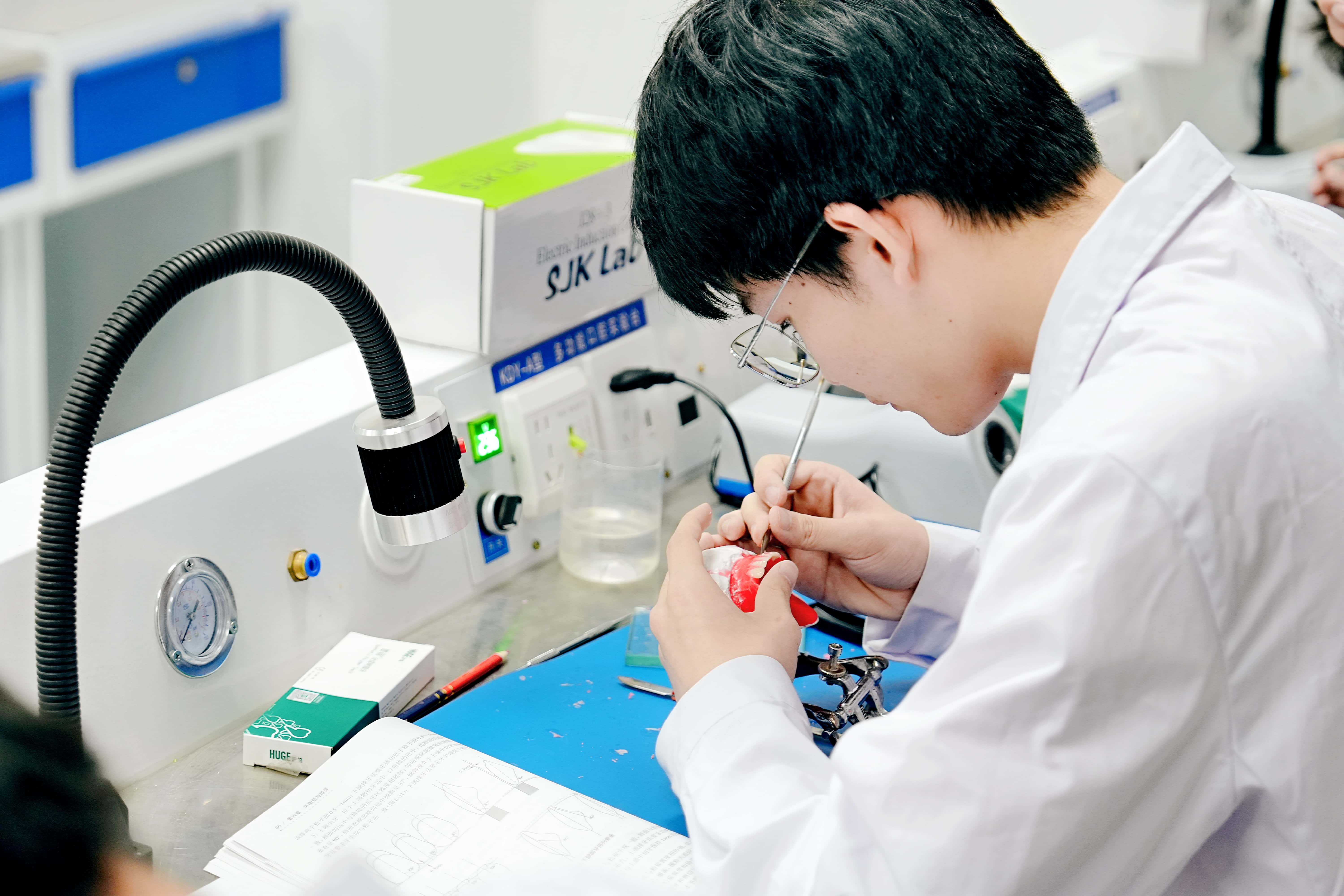 在鄭州醫(yī)藥健康職業(yè)學(xué)院內(nèi),醫(yī)學(xué)影像實(shí)訓(xùn)中心、口腔醫(yī)學(xué)教學(xué)實(shí)訓(xùn)中心、VR中藥虛擬仿真實(shí)訓(xùn)平臺(tái)等多個(gè)智慧醫(yī)養(yǎng)實(shí)訓(xùn)室,為學(xué)生構(gòu)建更貼近實(shí)際的教學(xué)模式。該?谇会t(yī)學(xué)技術(shù)教師劉佳峰說,他們教授的是全口義齒工藝技術(shù)課程,加強(qiáng)實(shí)操才能讓學(xué)生學(xué)到真本事。