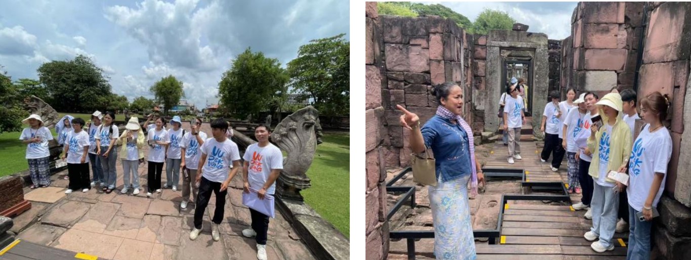 同學(xué)們先后參觀了呵叻府的多處歷史古跡。潘南遷古寺的浮雕展現(xiàn)著泰國(guó)古代雕塑藝術(shù)的魅力,坦布拉薩特考古遺址留存著古老文明的印記,還有“高棉藝術(shù)明珠”之稱的披邁歷史公園,以宏大的石砌建筑重現(xiàn)了前吳哥時(shí)期的景象。
