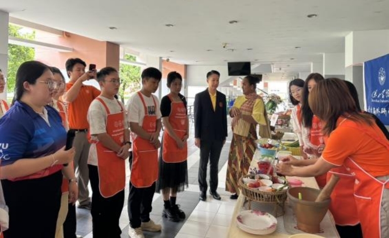 同學(xué)們?cè)谖檀髤⒓恿颂┎兔朗痴n,親手學(xué)做泰式木瓜沙拉、泰式湯圓等傳統(tǒng)美食,趣味無窮;走進(jìn)了泰國(guó)鄉(xiāng)村,在亞洲知名的ChokChai畜牧農(nóng)場(chǎng),大家看到了智能化奶牛養(yǎng)殖、生態(tài)農(nóng)業(yè)產(chǎn)業(yè)鏈和特色牛仔文化,了解到泰國(guó)現(xiàn)代農(nóng)業(yè)的可持續(xù)發(fā)展模式;在大城府夜市,同學(xué)們品味地道船面、芒果糯米飯、泰式火鍋等地道小吃,在與攤主的微笑交流中實(shí)踐語(yǔ)言所學(xué),感受到了“泰式幸福”的生活哲學(xué)。