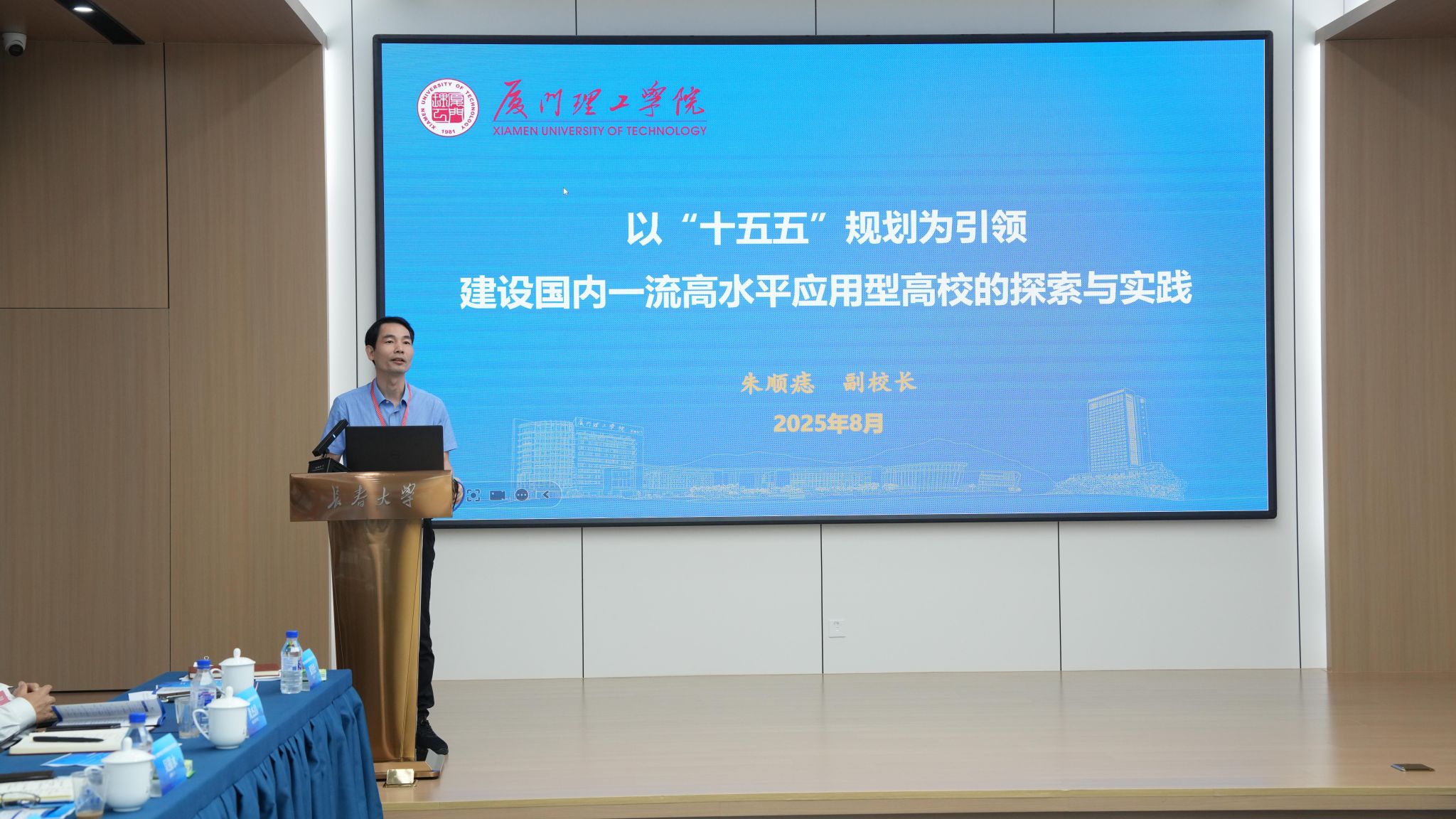 廈門理工學(xué)院副校長(zhǎng)朱順痣作了題為《以‘十五五’規(guī)劃為引領(lǐng),建設(shè)國(guó)內(nèi)一流高水平應(yīng)用型高校的探索與實(shí)踐》的報(bào)告。
